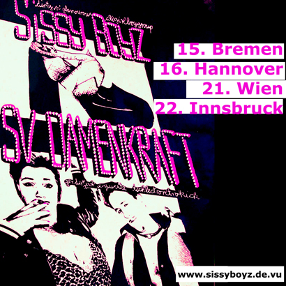 EUROGAY Interview. Wie alt seit ihr? Mit wem schlaft ihr so? Wie heißt ihr im richtigen Leben? "Kein richtiges Leben im Falschen", drei Sissy Boyz, alle mit langen Haaren plaudern aus dem Nähkästchen. Rausgekommen ist "Frischhaltefolie gegen Geschlechterrollen. Die Sissy Boyz machen Spaß" und Diskussionen über ihre Position zum Homo-Mainstream. "Ein Fehler, nur Scheiße habt ihr gebaut", sagt Steve, "Ach, es kommt auch was rüber im Artikel", entgegnen die Schuldigen. Bis heute ungeklärt.