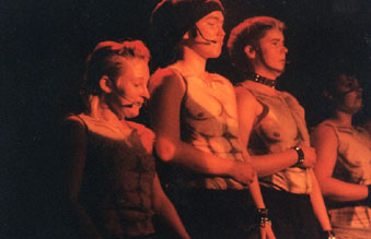 "Indeed, said Ladyfest Manchester, which had a some quality acts mixed in with some bad rock music; needless to say none of the photos in a venue this size came out. There's a couple of shots of THE SISSY BOYZ - five girls from Deutschland in (quite realistic) East17 male drag rapping in German about androgyny-o-phobia (or whatever it is), miming to Euro pop remixes and going down a storm as you can see."